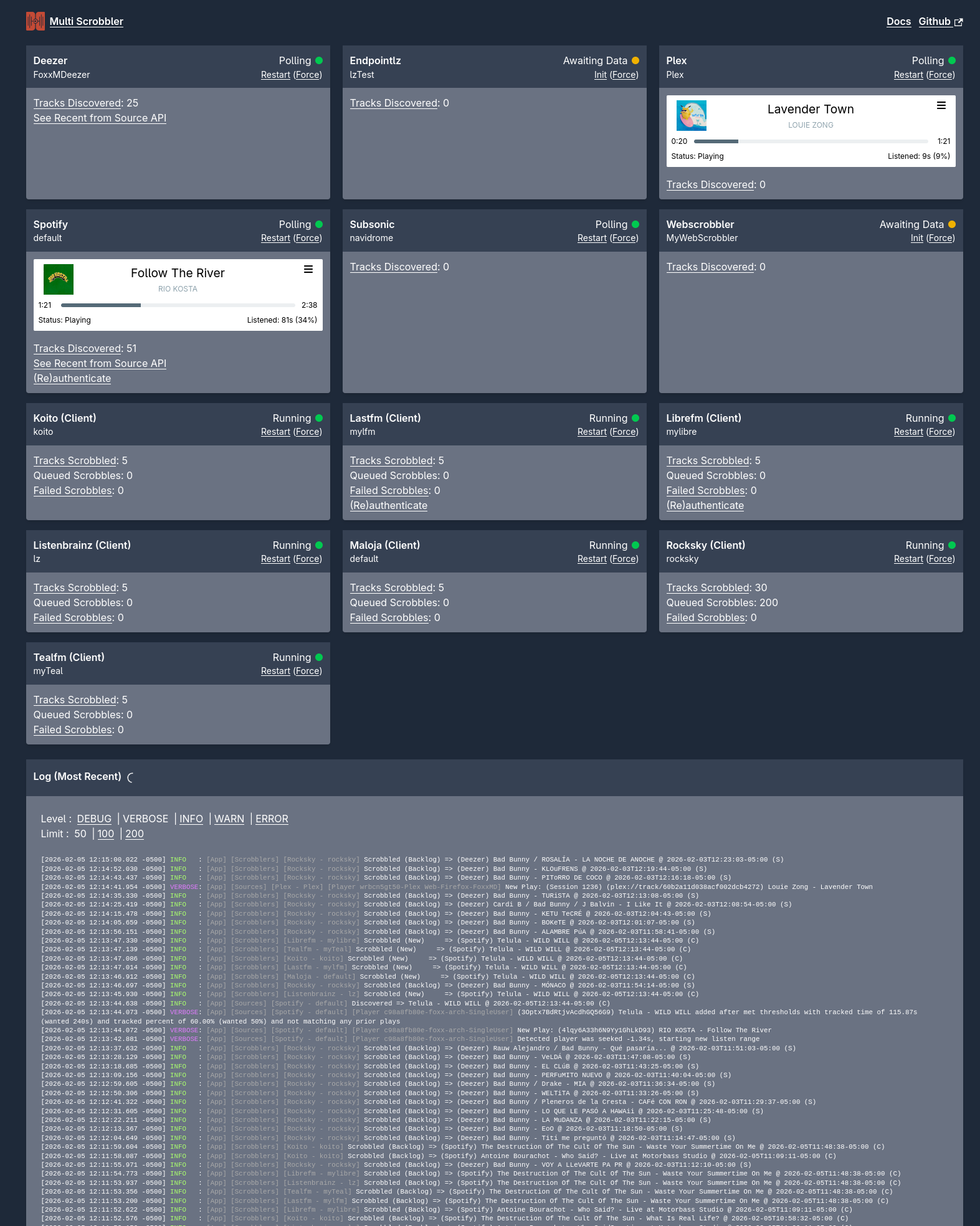 - Supports scrobbling to many Clients